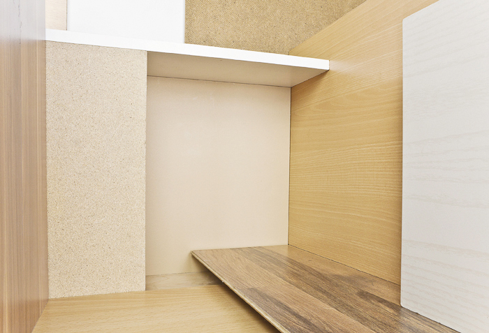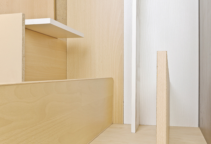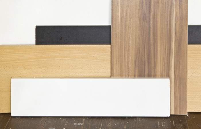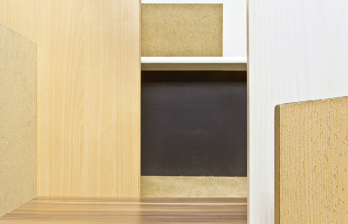 Die Materialien der Kompositionen besteht aus entsorgten Teile von Möbeln und Wohnungseinrichtungen,