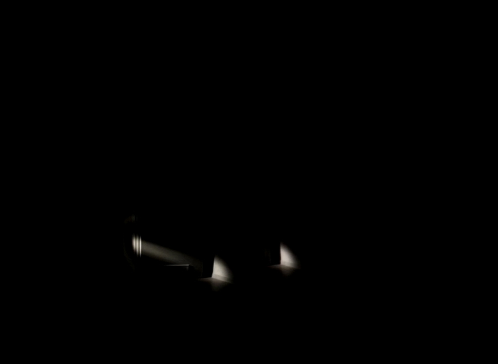 Ein Lichtstrahl tastet einen dunklen Raum ab und versucht ihn als Ganzes zu erfassen.